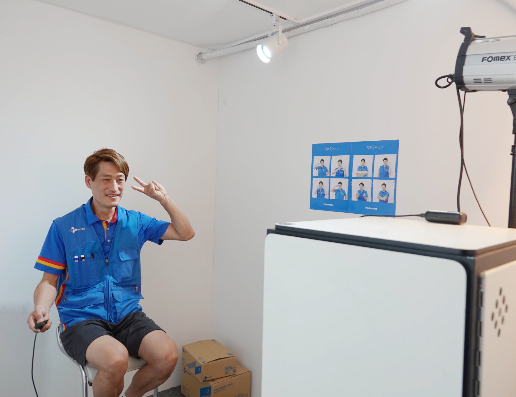 [CJ대한통운] 캠페인에 참여한 택배기사가 포토트럭에서 직접 프로필 사진을 찍고 있다.