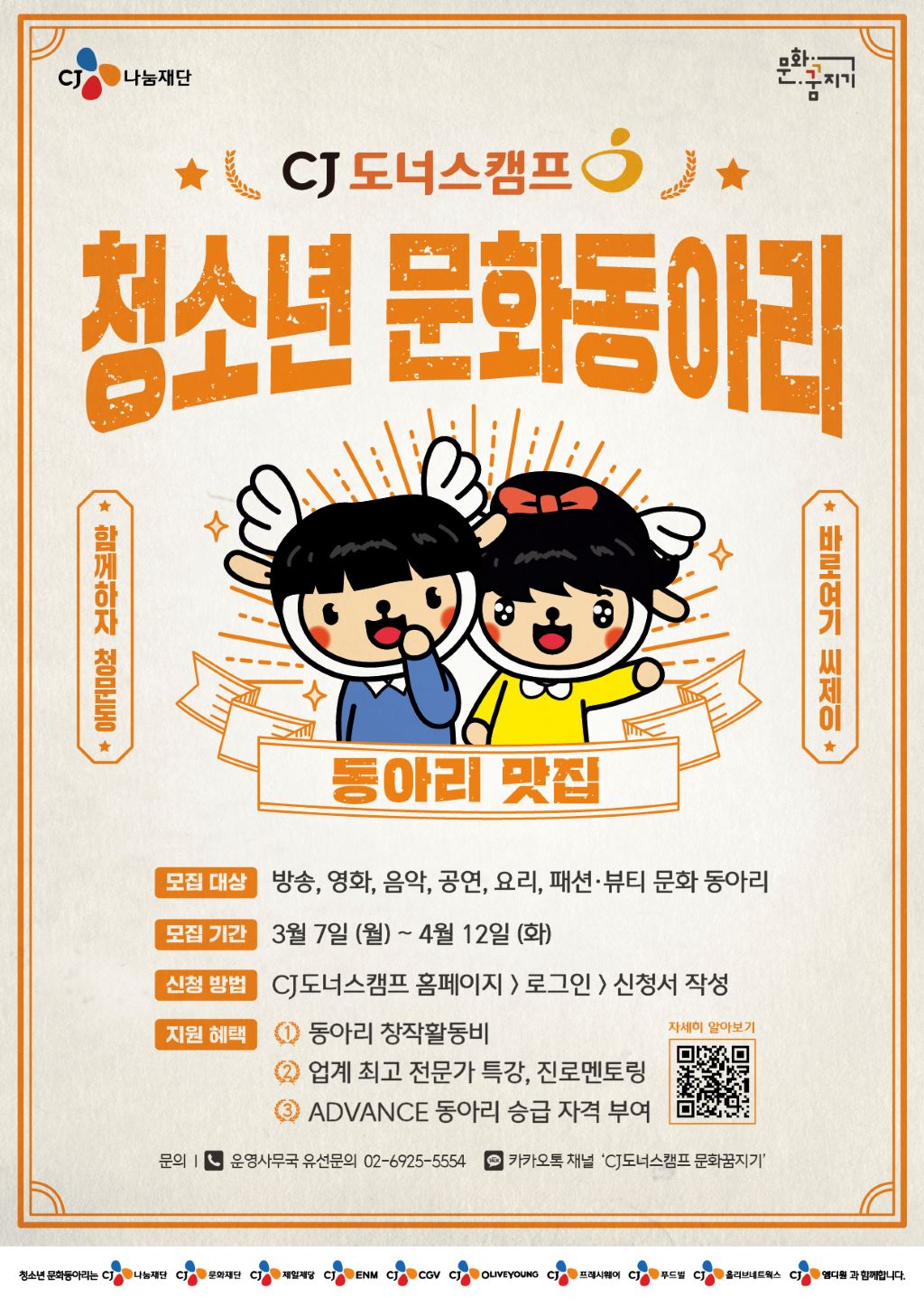 [CJ제일제당] 나눔재단, 문화 창작·체험 기회 통해 성장할 ‘청소년 문화동아리’ 모집 포스터