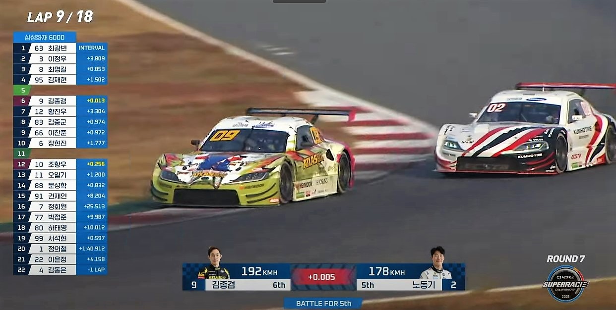 [CJ대한통운] 순위다툼 중인 두 차량의 속도, 간격을 보여주는 방송화면