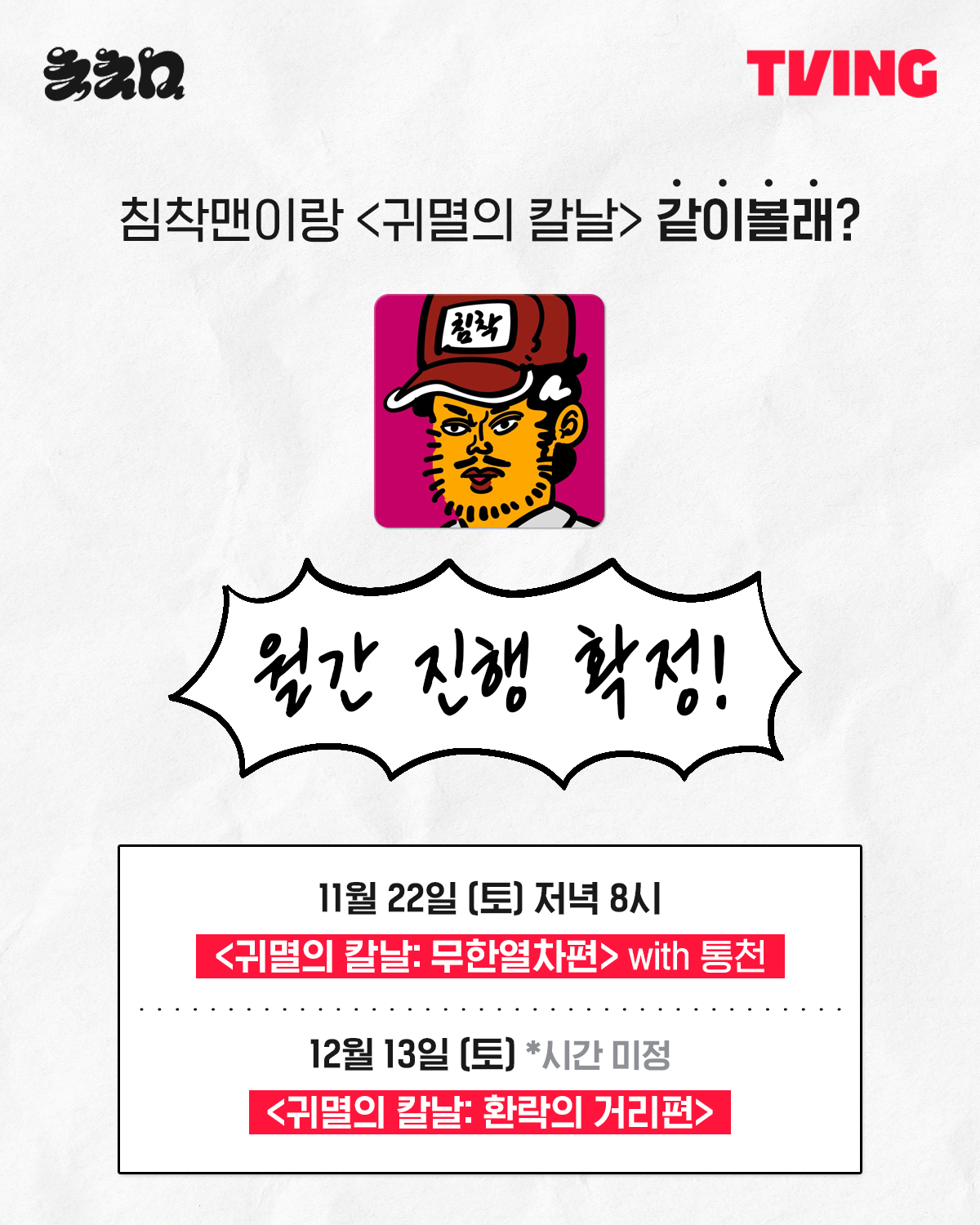 티빙, 침착맨과 ‘귀멸의 칼날 같이볼래?’ 월간 라이브 확정! 애니메이션 크리에이터 팬덤 동시 공략 통했다!
