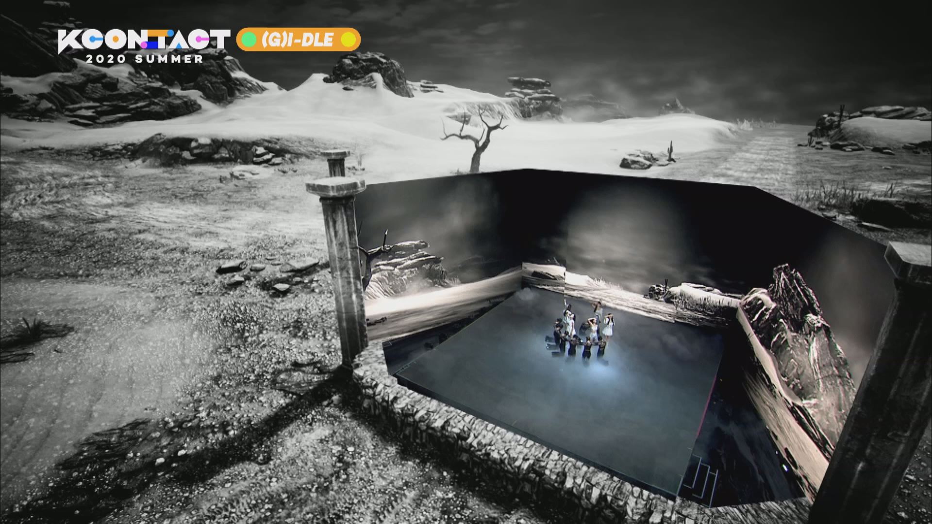 [케이콘택트 2020 서머] MR기술을 적용, 흑백사막에서 공연하고 있는 듯한 (여자)아이들